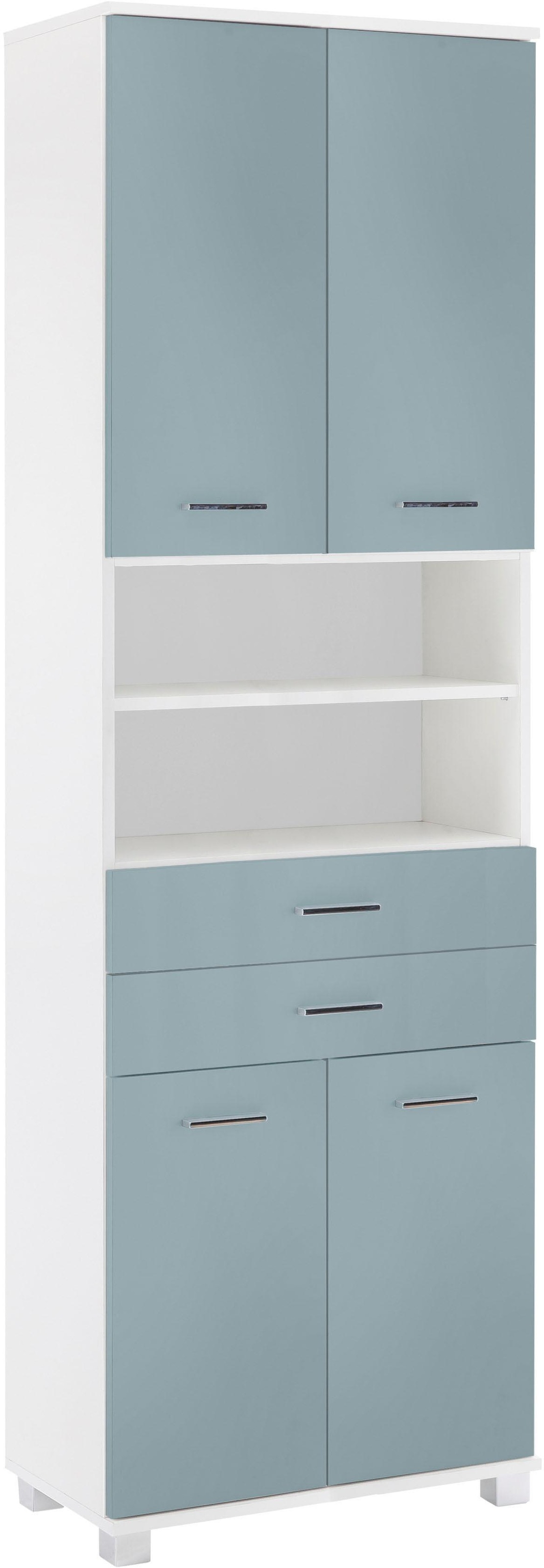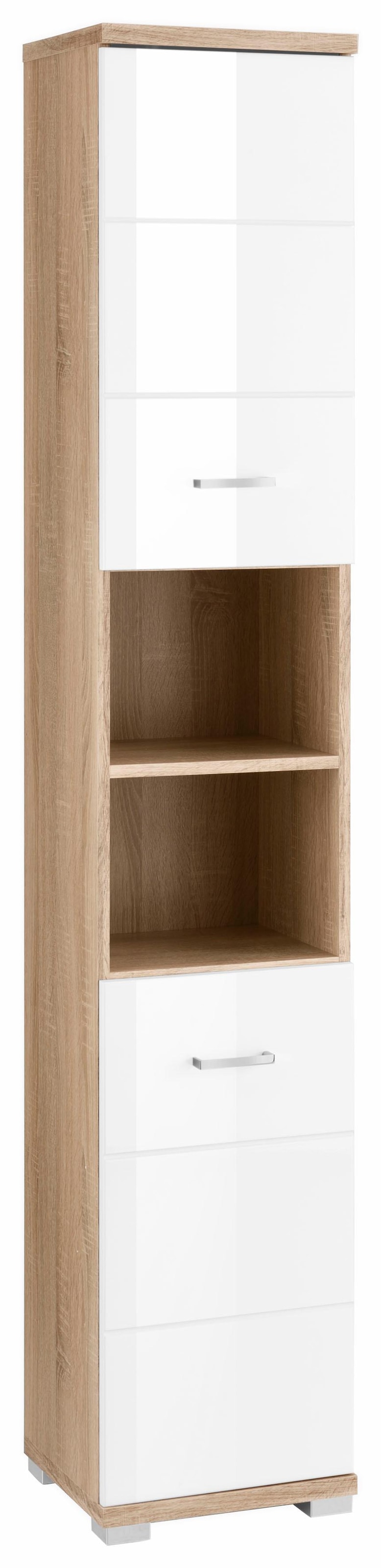 homexperts hochschrank nusa breite 35 cm badezimmerschrank mit metallgriffen welchselbarer turanschlag und 2 praktische offene facher mdf front in hochglanz optik auf raten kaufen quelle de