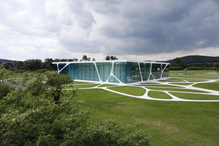leonardo glass cube is a glass fronted brand pavilion in bad driburg germany designed by 3deluxe glass cube architecture glass building